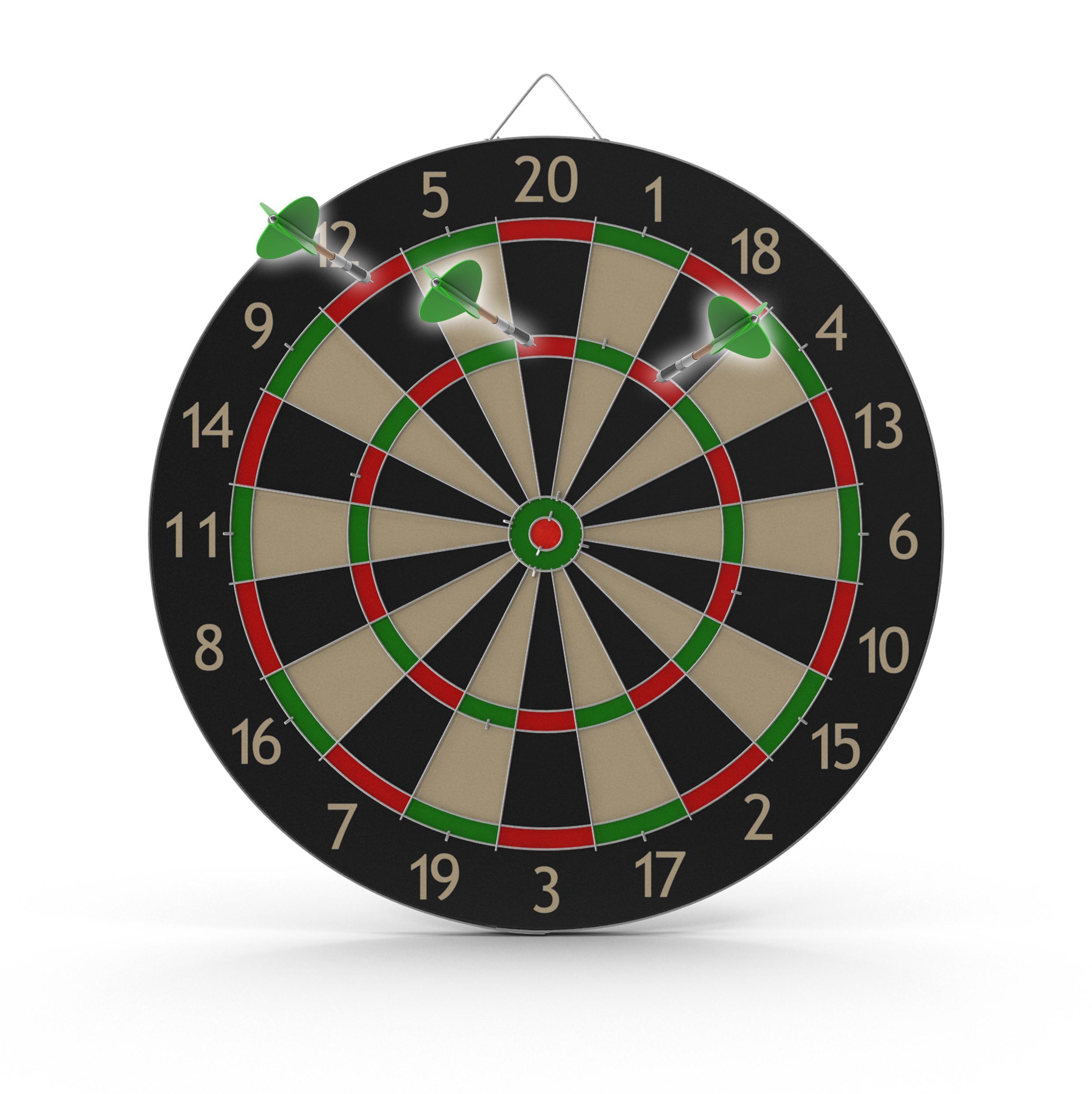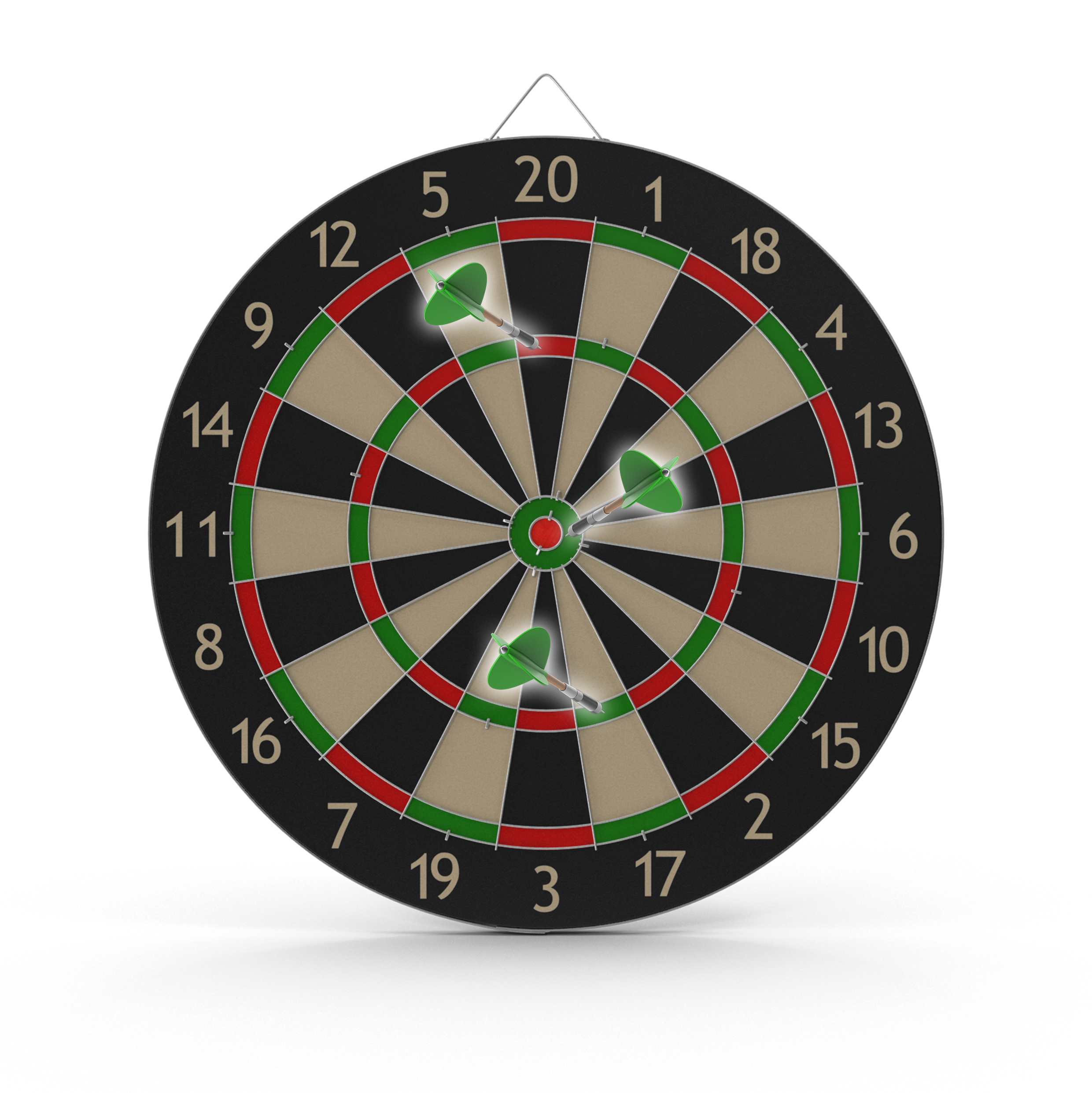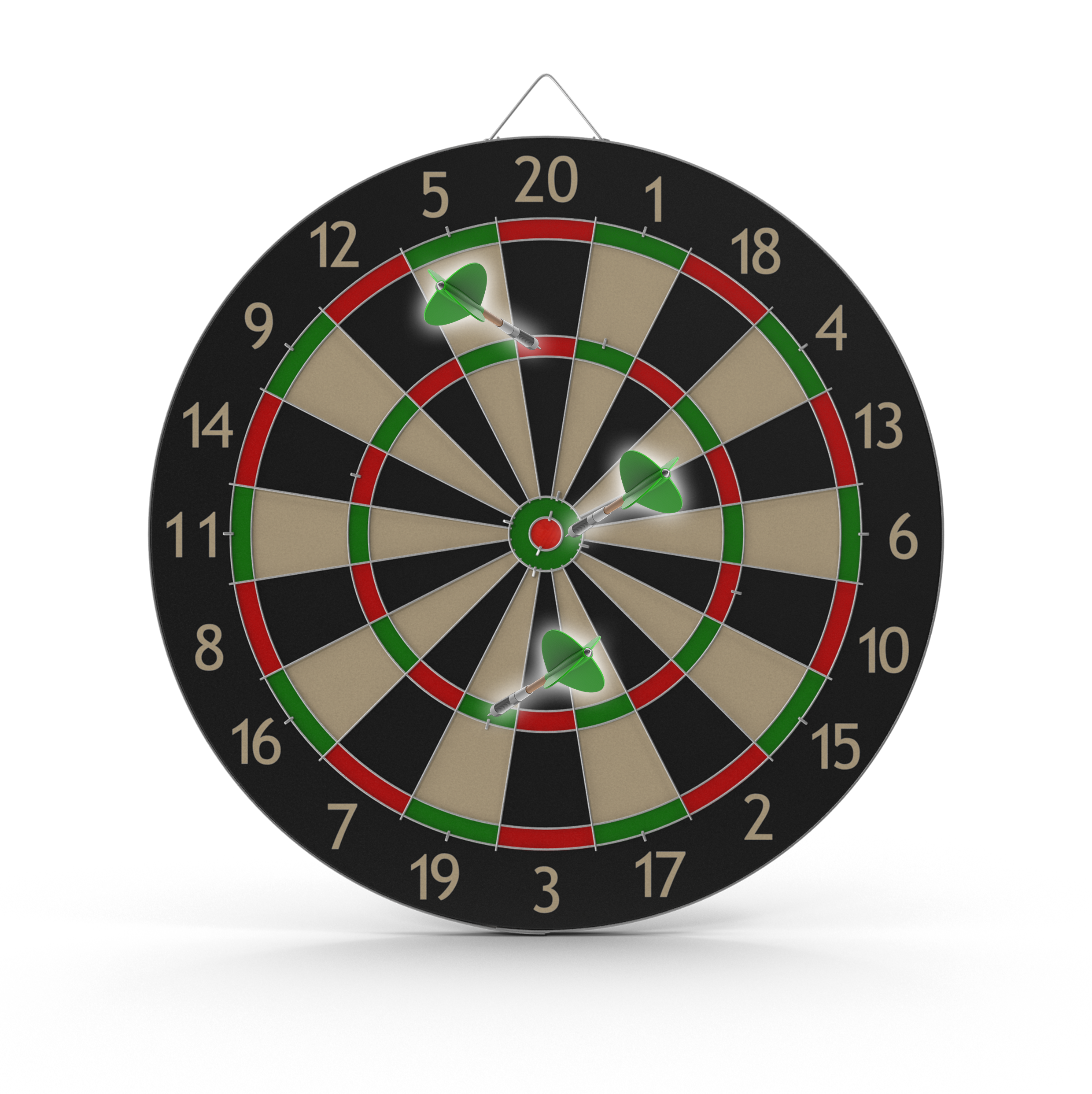 Oefen met de dartborden hieronder! Kijk goed naar de afbeeldingen. Wat is de totaalscore van de drie pijlen?